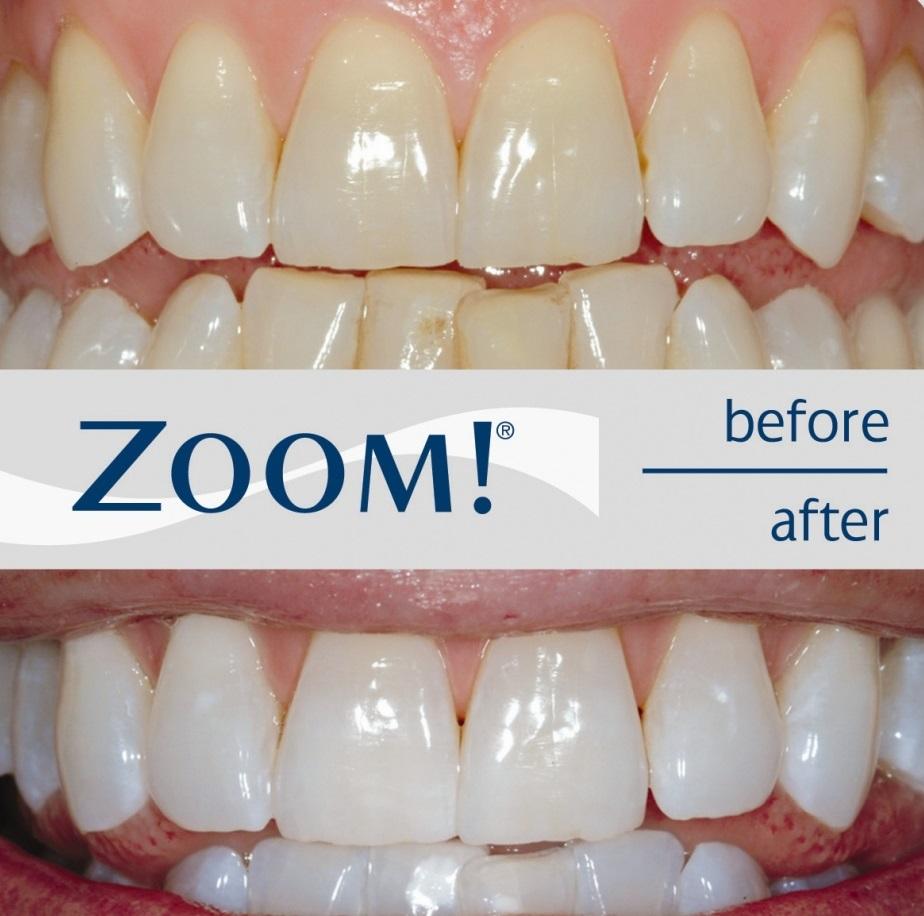 - Система ZOOM 4 обладает дополнительными защитными свойствами: в геле, который наносится на зубы, содержится аморфный фосфат кальция. Во время процедуры он заполняет все микротрещины на эмали, тем самым «цементируя» ее.