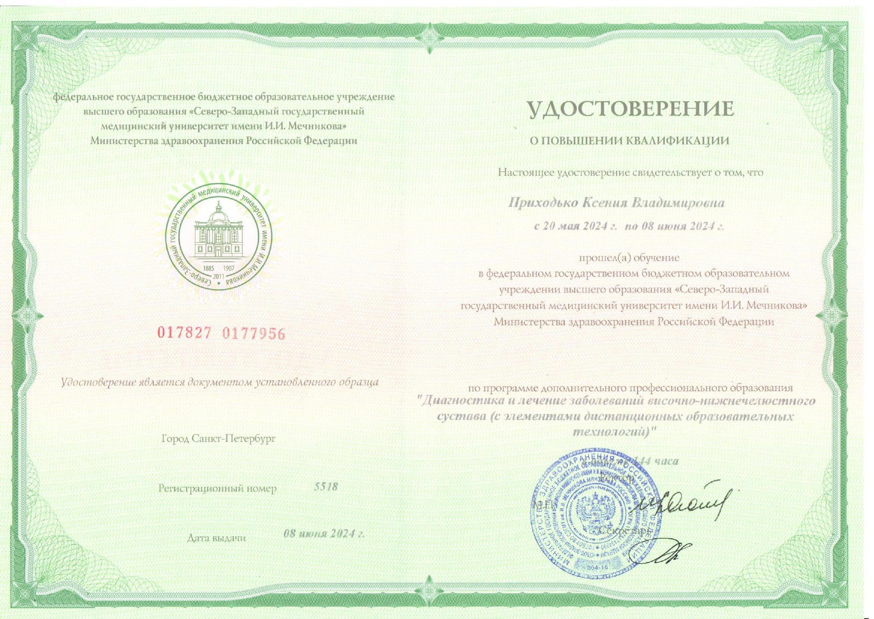 Федеральное государственное образовательное учреждение высшего образования «Первый Санкт-Петербургский государственный медицинский университет имени академика И.П. Павлова Министерства здравоохранения Российской Федерации